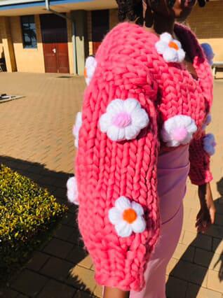 Wrap yourself in warmth and bold beauty with our Chunky Flower Bloom Cardigan, designed for those who love to stand out. This handcrafted piece features oversized, hand-stitched flowers in playful shades of pink, white, and orange — blooming across a rich, bubblegum pink backdrop.